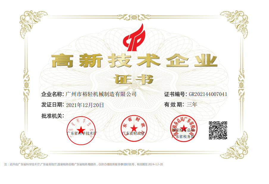 公司分別于廣州番禺廣州裕輕機械和肇慶四會大旺高新區廣東裕輕實業和裕輕智能其中大旺生產基地占地2.5萬平方,擁有獨立的生產基地為公司生產.研發.創新等,公司擁有一支由行業數十名精英組成的專業化智能化包裝設備及軟件研發團隊。團隊成員憑借深厚的行業洞察力和豐富的實戰經驗,不斷推動產品與技術的迭代升級,確保公司始終站在行業發展的前沿。公司主要產品涵蓋智能化包裝生產線、高端包裝設備、機器人自動化應用以及定制化軟件系統等多個領域,廣泛應用于食品、醫藥、日化、電子等多個行業。